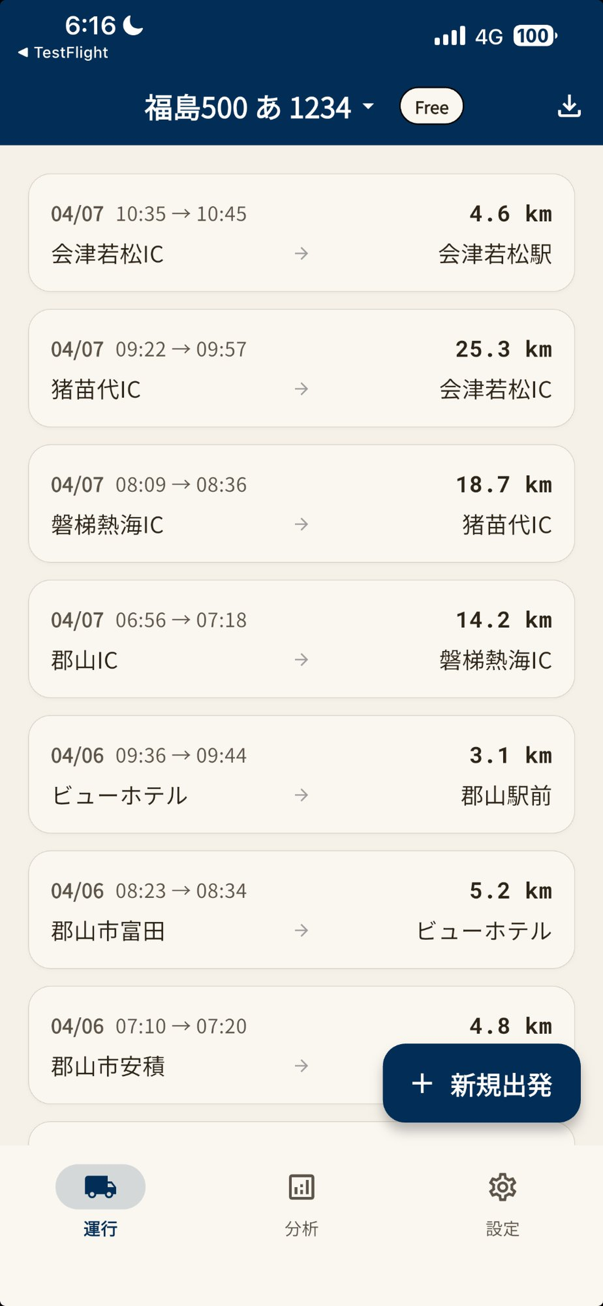 「+ 新規出発」をタップしてスワイプするだけ。記録開始。